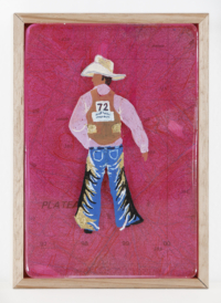 Artist Katie Hagebols Title Cowboy Catalogue # 23-6701 Work Posca, resin, ink & gold leaf on paper — 8 x 12cm Price Sold Enquire