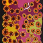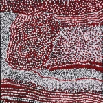 Spinifex arts practice has been untainted by a history of ethnography or tourist market art. However painting “country” is not always so simple for a traditional artist; much of the Tjukurrpa must remain in the sacred realm and not be revealed even to an uninitiated eye. In this way Spinifex artists, like their counterparts in other communities, have created a system of story telling that identifies country within the confines of their Law. Their work has emerged from tradition but evolved in a contemporary context that results in a highly resolved and balanced composition.