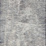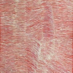 “ Kuruyultu, near the small community of Tjukurrla in Western Australia, is a deep waterhole in a small mountain range, a ‘rockhole’. It is the Tjukurrpa (Dreaming) of Napanangka’s father and it is her country too … story of the wallaby mother and daughter who were speared at Kuruyultu whilst they were looking for food and water around the Tjukurrpa. The rockhole is what inspires Napanangka’s work. She paints the country around Kuruyultu in all the different seasons: after the rain, when the flowers blossom, during the rain, when the water runs off the sand dunes, and in this exhibition she focuses on the vastness of the country surrounding Kuruyultu, its sand hills spanning throughout the Western Desert. Her lines evoke the sand hills around Kuruyultu and situate the wallaby mother and daughter into this vast desertscape. The central motif of her previous works, the wallaby mother and daughter sitting at the rockhole, is removed in these latest works. They reflect on the place Kuruyultu and create through this further abstraction an infinity of sand dunes in the centre of Australia.”